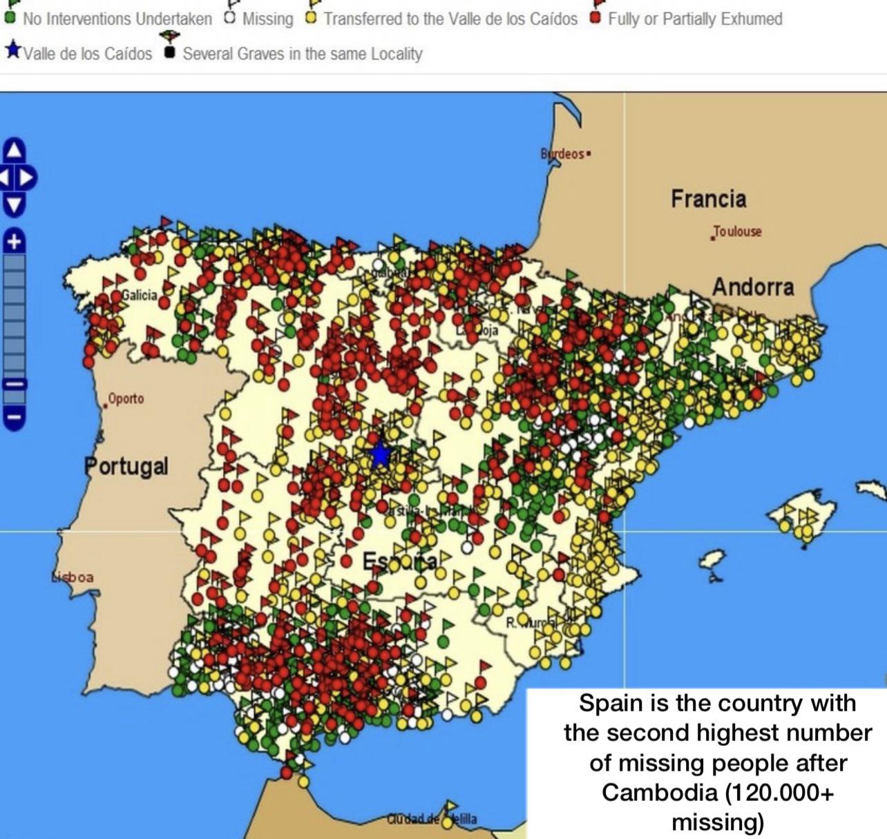 Let you also know that if you are born in Catalonia or other parts of spain with a distinc culture, these terrorists will hate you forever and will do anything to traffick with your id, stalk you, render you and try to kill you, spain is a terror state, find here below a map available online of spain with the found mass murder graves.